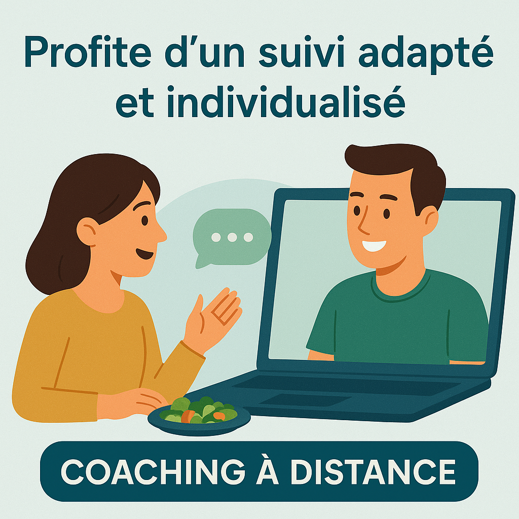 Un accompagnement 100% personnalisé, où que tu sois. Grâce à notre coaching à distance, tu bénéficies de conseils nutritionnels adaptés, d’un suivi régulier et d’un soutien constant pour atteindre tes objectifs sans contraintes de déplacement.