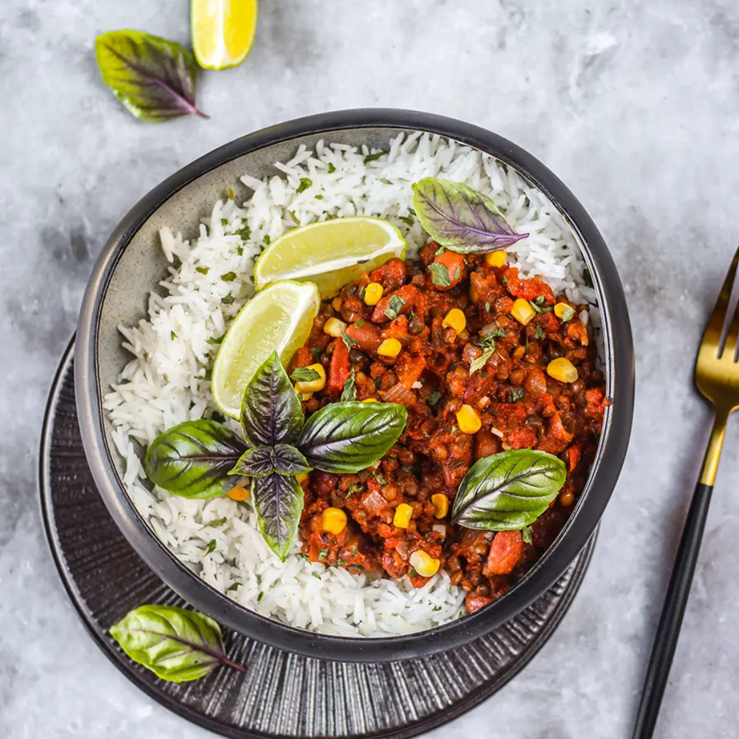 hachis de dinde, riz basmati, haricots rouge, poivrons rouges, oignons, ail, tomates, maïs, cumin, mozzarella, huile d'olive